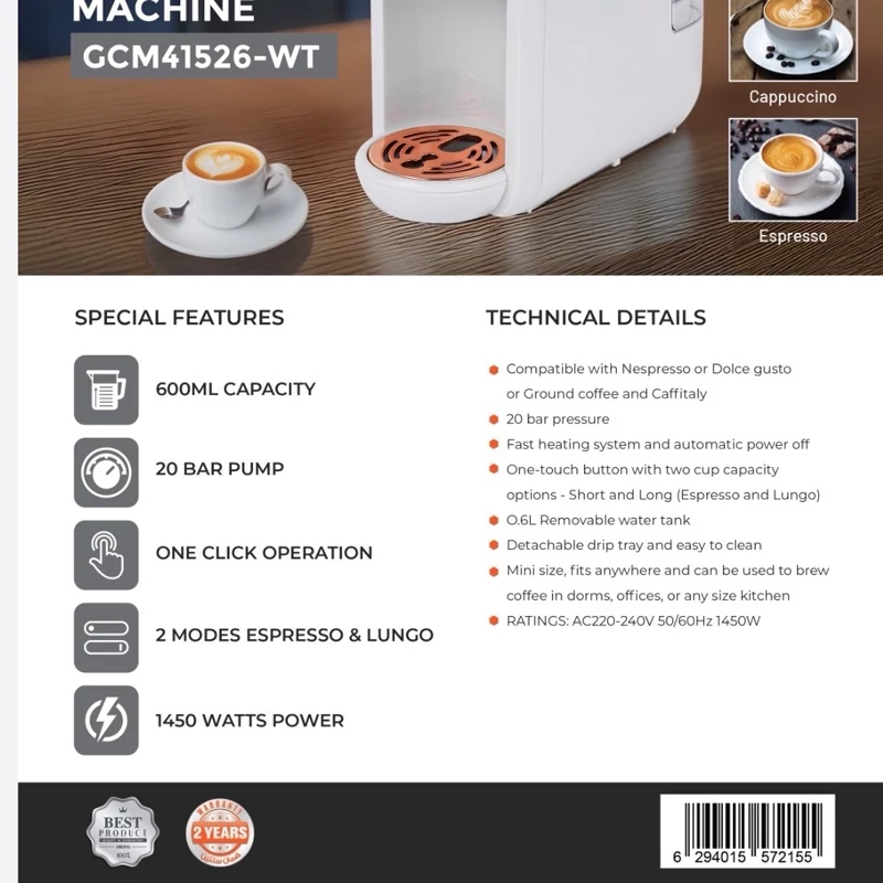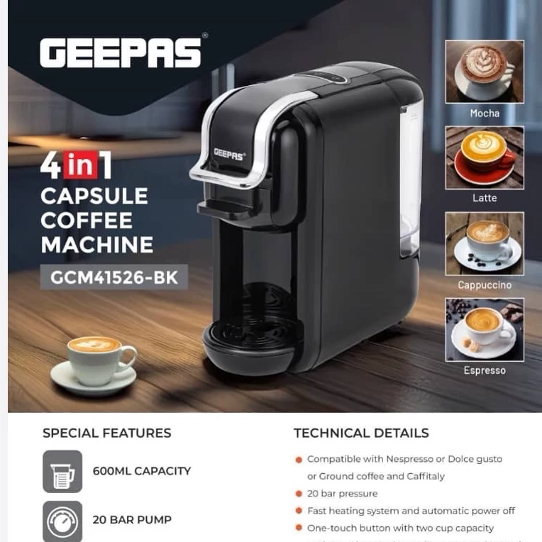 محصول جدید شرکت جیپاس نسپرسوساز چهار کاره 🔹قابلیت عصاره گیری از پودر قهوه 🔹قابلیت عصاره گیری ازکپسول های دولچه 🔹قابلیت عصاره گیری از کپسول های ورتو 🔹قابلیت عصاره گیری از کپسول های نسپرسو 1450 وات توان فشار 20بار رنگ سفید و مشکی