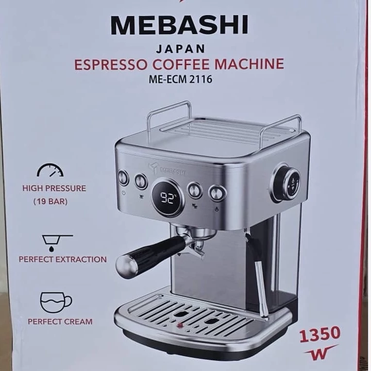 اسپرسوساز مباشی مدل ME-ECM 2116 ساخت کشور : چین تحت لیسانس ژاپن سایز پرتافیلتر : 51 جنس بدنه : استیل ضد زنگ فشار بخار : 19 بار توان موتور : 1350 وات ظرفیت مخزن : 1.5 لیتر سستم کاپوچینوساز : دارد نشانگر سطح آب : دارد قابلیت تولید کف شیر : دارد نازل بخار : دارد تمپر و پیمانه قهوه : دارد سینی چکه گیر : دارد گرم کن فنجان : دارد سستم خاموشی خودکار : دارد وزن : 5 کیلوگرم ابعاد: 20×45×35 سانتی متر نوشیدنی های قابل تهیه : اسپرسو،کاپوچینو،لاته،کافه ماکیاتو،آب جوش،شیر گرم،موکا و …