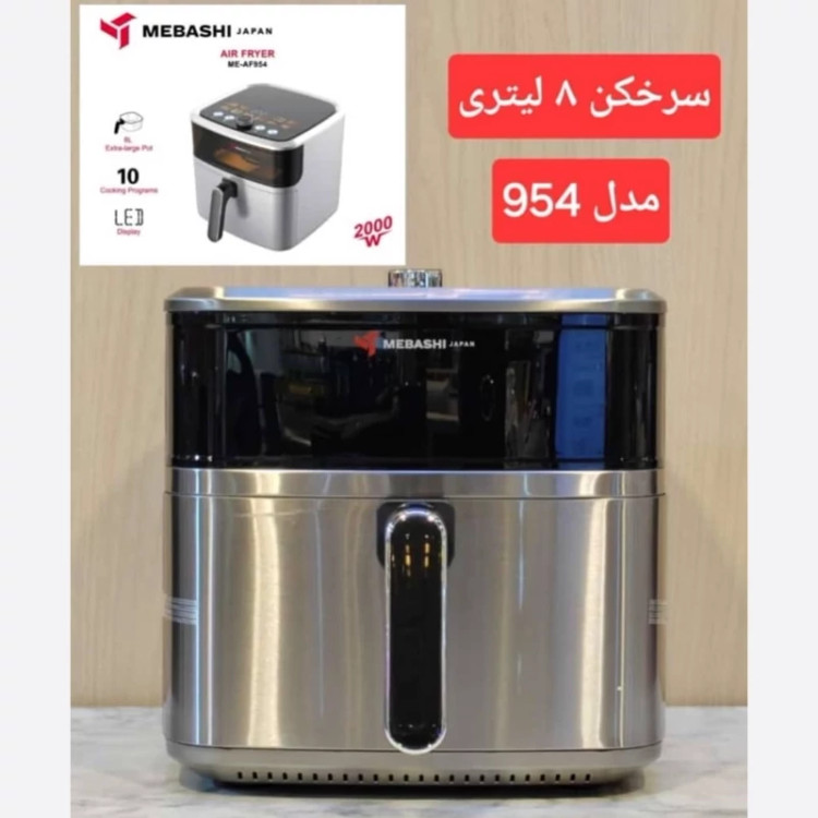 سرخ کن جدید برند مباشی مدل ME-AF954 ترکیب طراحی مدرن و تکنولوژی پیشرفته دارای صفحه نمایش LED با کنترل پنل حساس به لمس : رنگ: استیل جنس بدنه: تمام استیل تعداد برنامه پخت: 10 برنامه توان مصرفی: 2000 وات پنجره و لامپ جهت مشاهده روند پخت: دارد ظرفیت : 8 لیتر جداشونده تایمر 60 دقیقه ای با زنگ هشدار: دارد فیلتر خروجی هوا: دارد قابلیت سرخ کردن بدون روغن: دارد